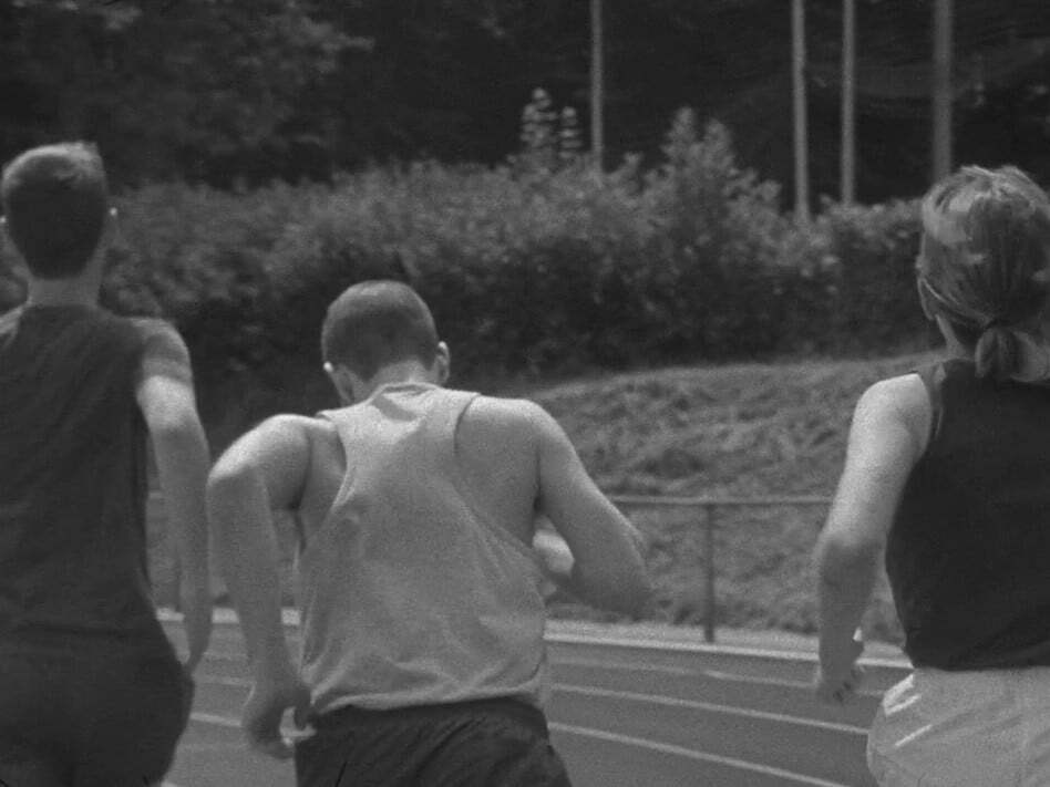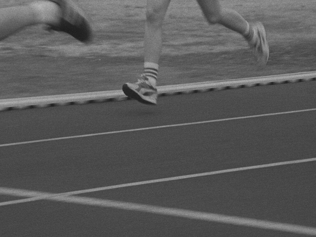 The repetitive soundscape and music generates suspense. Breath, heartbeat and the runners' strides give way to each other. Towards the end of the film the physical exertion turns the characters into a state of bliss.